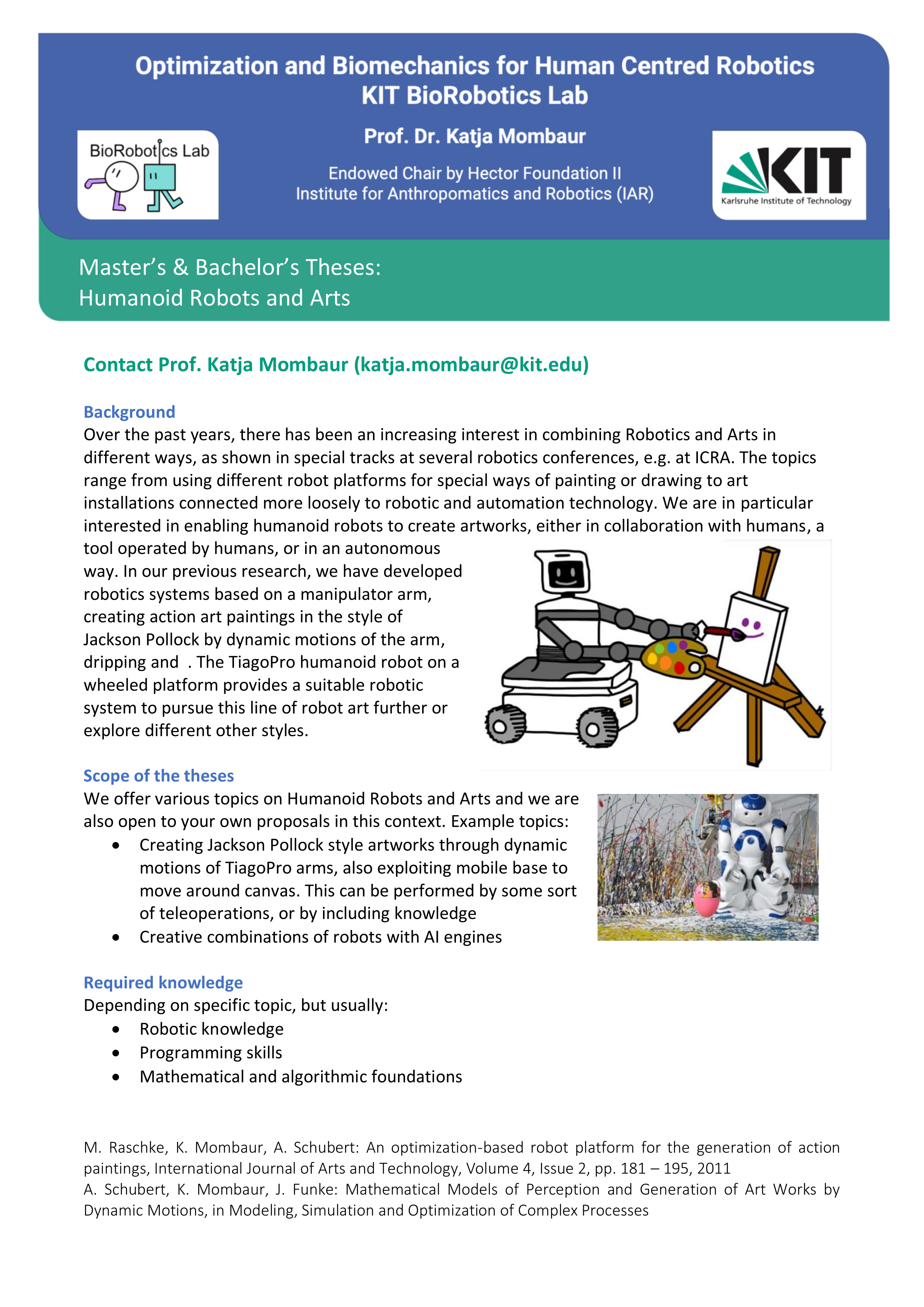 Optimization and Biomechanics for Human-Centred Robotics (HCR)