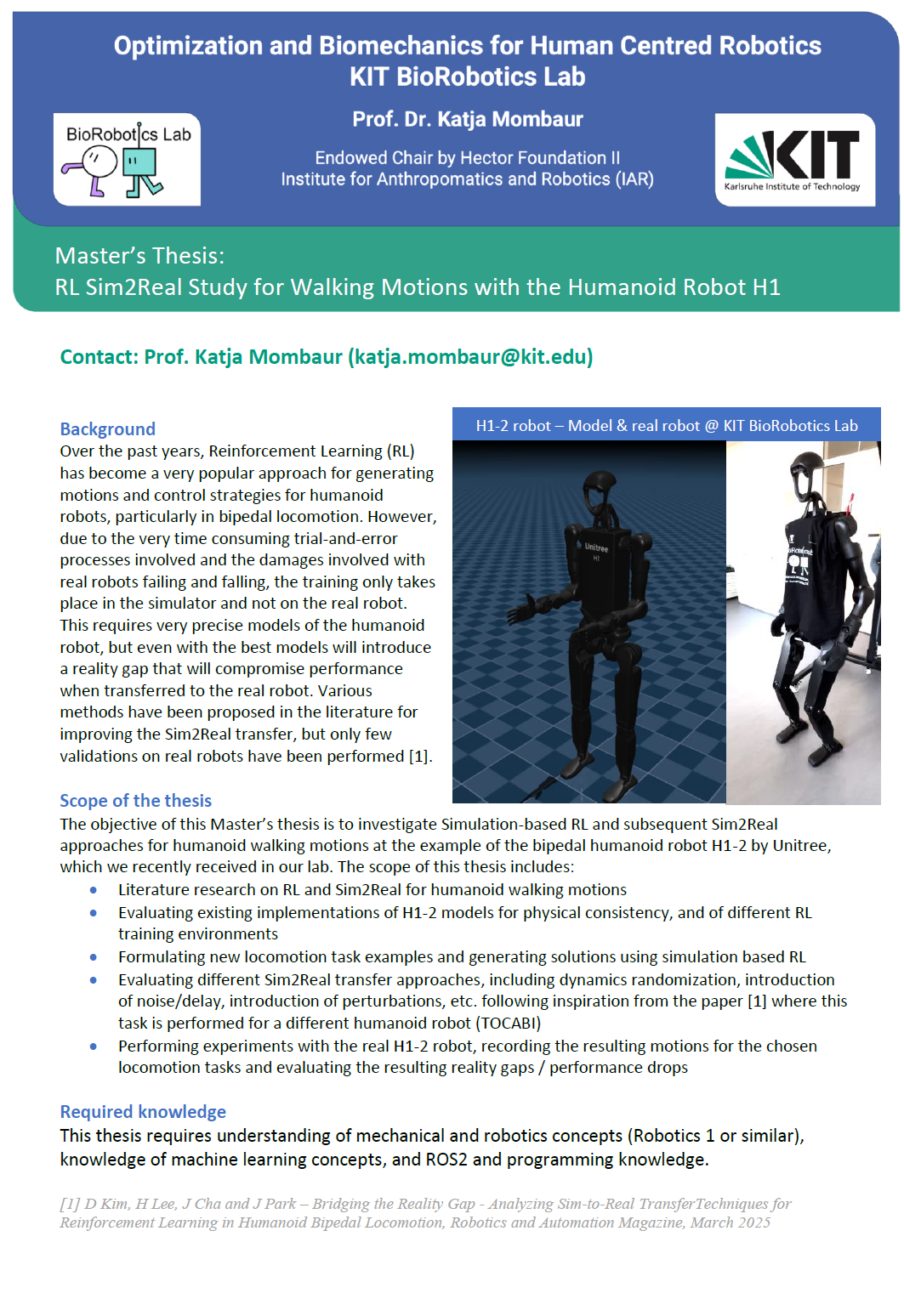 RL Sim2Real Study for Walking Motions with the Humanoid Robot H1
